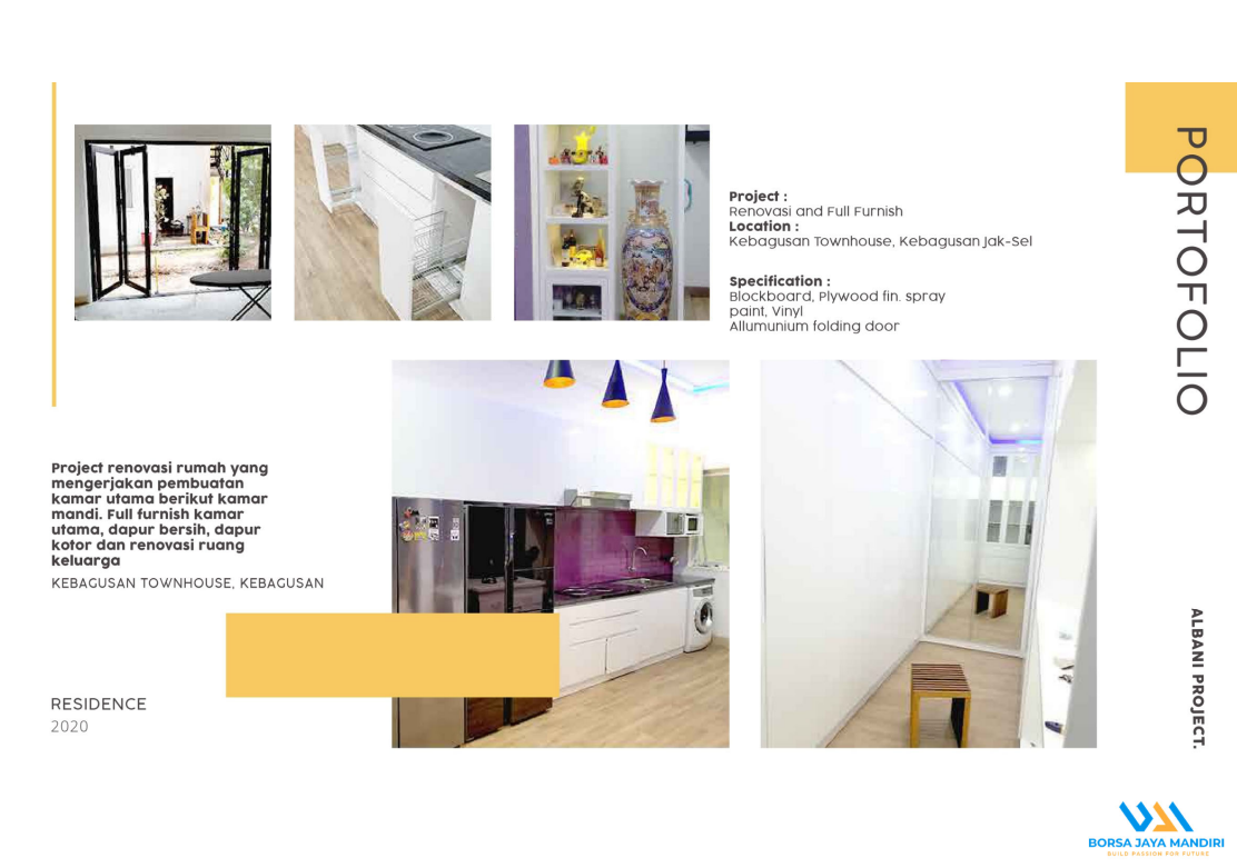 Borsa Jaya Mandiri adalah perusahaan yang bergerak di bidang konstruksi, renovasi, dan pembuatan custom furniture. Mereka melayani berbagai kebutuhan mulai dari pembangunan rumah tinggal, renovasi toko, hingga pembuatan furnitur sesuai pesanan seperti lemari, meja, dan perlengkapan interior lainnya. Dengan tenaga kerja profesional, peralatan modern, dan komitmen pada kualitas, Borsa Jaya Mandiri berfokus memberikan hasil terbaik yang fungsional, estetis, dan tahan lama untuk setiap proyek. Perusahaan ini mengutamakan kepuasan pelanggan melalui pengerjaan tepat waktu, desain yang menyesuaikan kebutuhan, serta harga yang kompetitif.